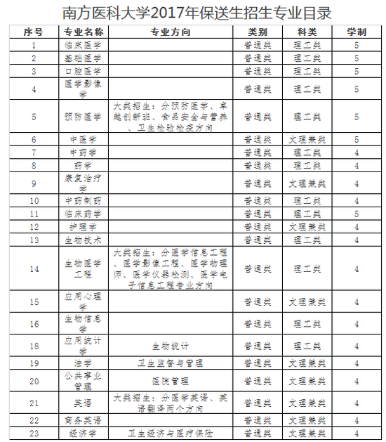 (五)专业志愿填报请参考《南方医科大学2017年保送生招生专业目录》。