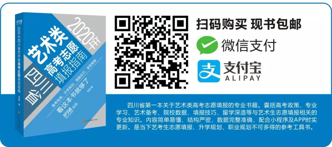 由四川科技出版社出版,昇学通专家团队编写的《2020年四川省艺术类高考志愿填报指南》正在火热预售中。该书是四川省第一本专为艺术生编写的志愿填报工具书!内容囊括艺考政策、升学规划、志愿填报技巧、历年录取数据(数据来自四川省教育考试院官方)。